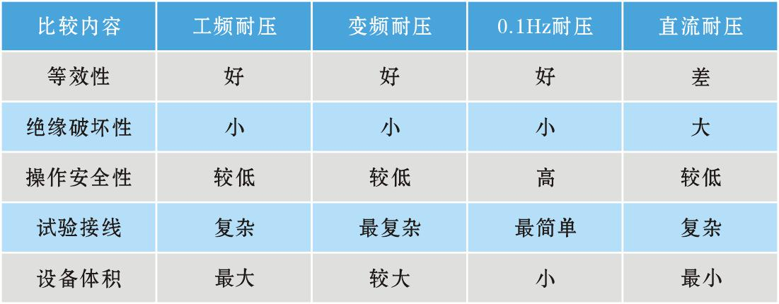 表 2 各種耐壓試驗(yàn)設(shè)備的性能比較: