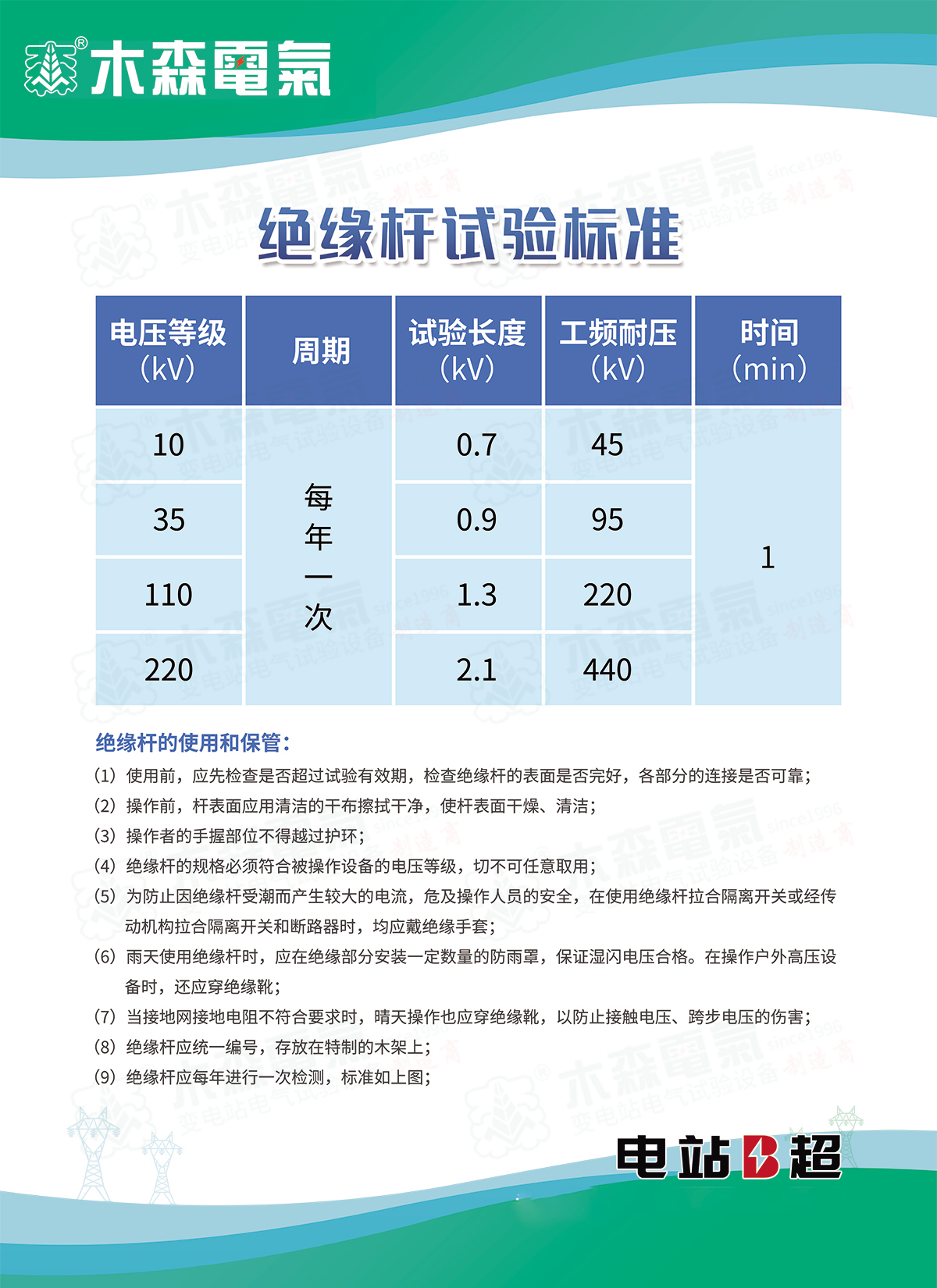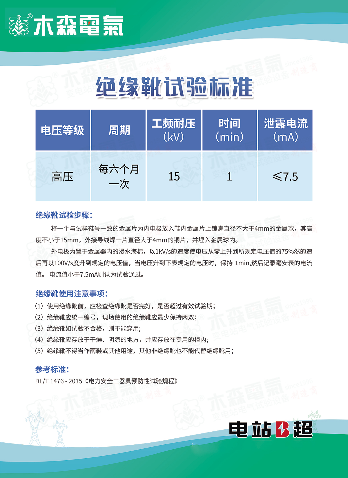 自動脫扣型絕緣靴(手套)耐壓支架是根據《DLT 976-2017 帶電作業工具、裝置和設備預防性試驗規程》、《DLT 1476-2015電力安全工器具預防性試驗規程》、《GBT 17622-2008帶電作業用絕緣手套》、《CB21148 2020足部防護 安全鞋》等相關規程中關于工頻耐壓的要求基礎上研發而成??梢园匆髮^緣鞋、絕緣手套等安全工器具進行智能化絕緣耐壓試驗,絕緣靴及絕緣手套耐試驗周期為半年,試驗過程中不允許擊穿,同時絕緣靴絕緣絕緣手套泄漏電流不大于限定值。產品適用于所有與電力相關行業。